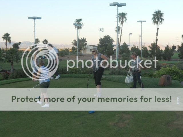 We played at the bar for a while enjoying some Nevada Pale Ale. I did hit a quad for $100 profit, but David went into the tank but did enjoy a couple of beers for $80. After making a wrong stop at the Recreation Center, we found the Angel Golf Club (directly across the street from the Rampart) and met up with everyone. Keep in mind I’ve never played a round of golf in my life, fortunately, this wasn’t BIG time golf; it was just putting green golf. Nine holes of putting greens—think a cross between putt-putt golf and actual golf. We were split into groups, the guys who were going to betting the holes, the girls (who wanted to be together), and the ones who easily confuses golf clubs with twirling batons—that would be me. The betting boys, who actually play the game, where joined with Blair Rodman, a world class poker player and author (who has become friends with Harv and Row—who by the way came in first and second respectively in the MPT yesterday—on the LVA boards).