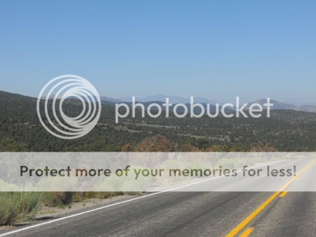 I should have thought about just why I was the ONLY car on this road for as far as the eye could see. Things started out just fine. A long, long straight drive with only sage brush and sand on each side of the road. Then, the 266 becomes the 168 (I’ve just entered into California, which I had to learn later because there was never the usual signs of Leaving Nevada or Welcome to California). Now things began to dramatically change. I began to climb, and climb, and climb and climb until I reached a peak where the sign said Elevation 7532 feet.