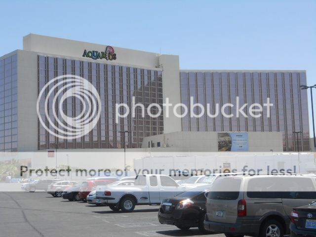 The Aquarius Hotel and Casino taken from the parking lot of the Riverside