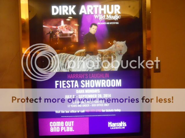 The drive to Laughlin was uneventful except for the speed trap known as Searchlight where you must go from 75 MPH to 25 MPH and a Nevada Highway Patrolman followed me almost through the entire town until he made a U-turn going after a motorist going the other direction. Laughlin was 108; a good 15 degrees hotter with no cloud cover whatsoever. I was checked in fine, but found that I wasn’t registered for the poker tournament. I spoke with Daman, the host on duty, and he made sure I was registered for the tournament and also gave me a couple of tickets to the Dirk Arthur magic show that night—nice!