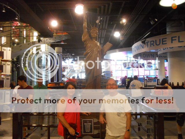 Cindy and Terry in front of an all-chocolate Statue of Liberty