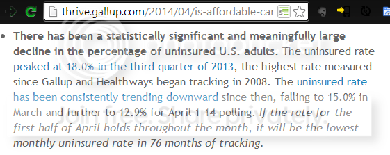Last fall, 18% of adults were uninsured. Now it's down to 12.9%, according to Gallup's latest work.