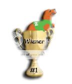Up for grabs again this year, at the end of the season is a container loaded up with gourmet cookie bones, to be provided by the losing dogs owner and shipped to the winning dogs home!! Also up for grabs is the weenie dog cup, pictured here. heh heh