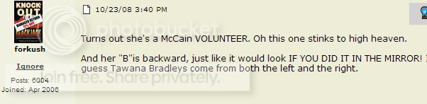I condemn Farrakhan because HE HAD MALCOLM X MURDERED. I condemned Sharpton - in this forum over five years ago - because of his involvement in the Tawana Brawley fake rape accusation. Here's my first posting reacting to the scumbag who accused a black Obama supporter of carving a 'B' in her face: