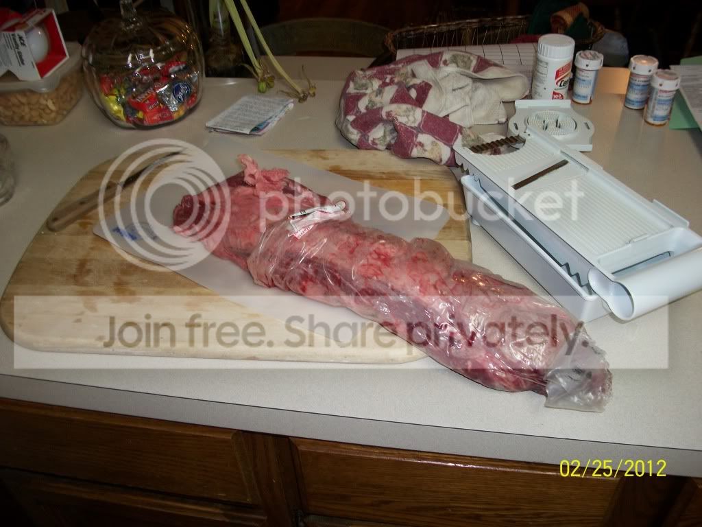 My local harris teeter had a pretty good deal going on for whole tenderloins and even tho i allready spent a 110 bucks at the grocery store yesterday,i had to pick this puppy up for 45 bucks along with a few other items.
