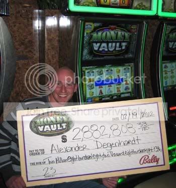Cpl. Alexander Degenhardt, in town for training at Nellis Air Force Base, won $2.8 million playing a Bally Money Vault slot machine on Sunday 19 February. This marks the second largest jackpot on a Bally Technologies machine ever.