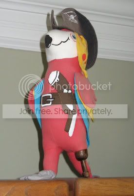 This is the Treasure Island Peg-Legged Parrot-Pirate who looks over DonDiego's left shoulder whenever he is at the computer. (That