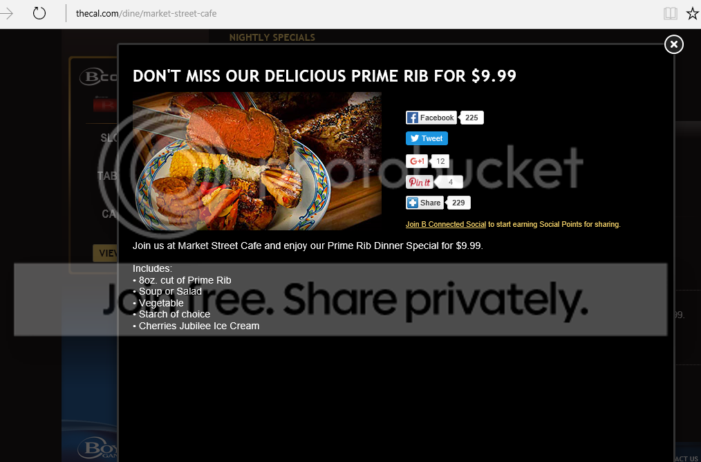 1) The Cal's $9.99 prime rib special and comes with choice of soup or salad bar (trust me on this one and take the all you can eat salad bar for the most bang for your buck), and a cherries jubilee for dessert.