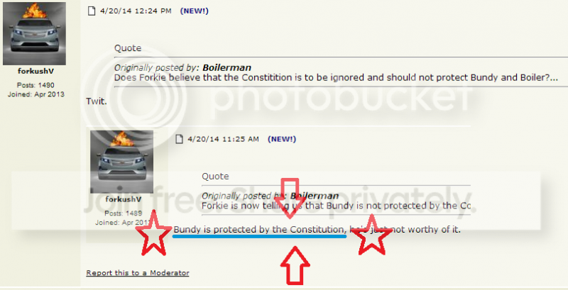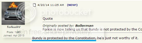 Forkie is now telling us that Bundy is not protected by the Constitution. I'm certainly not surprised by his predictable position.