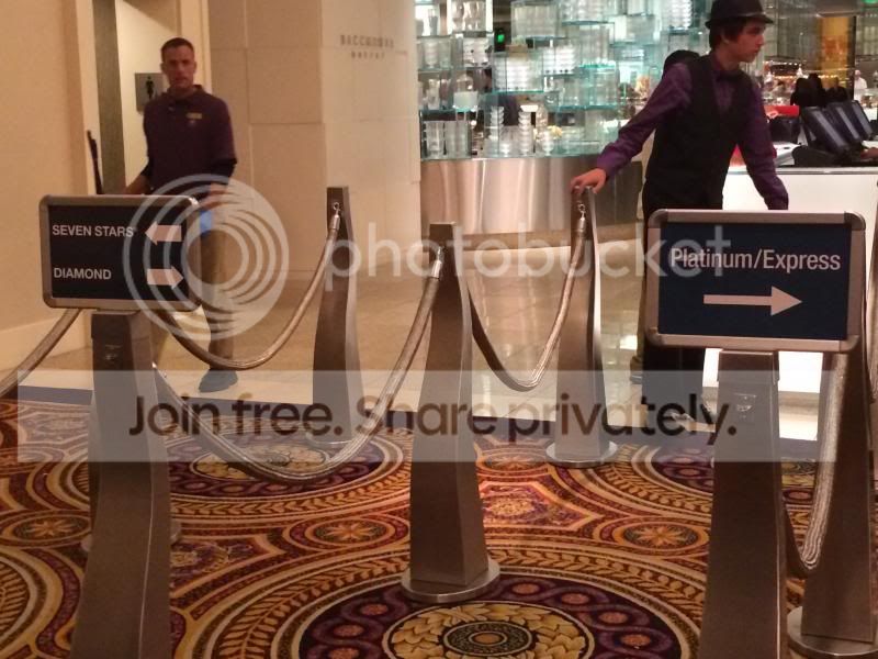 Later i checked in to get my newly platinum rewards card at the promo booth. I only got this because i signed up for the total rewards credit card. I do play here but nothing to reach the higher tier levels.. You are only a platinum member for 5 months during this promotion and the only way to keep the platinum level is for you to reach the minimum requirement to extent it for another year before the 5 month dead-line but i tell you it sure does come in handy if you decide to visit the bacchanal buffet which was out of this world!! Diamond/Platinum there was NO line compared to the regular line going for an hour or two wait.