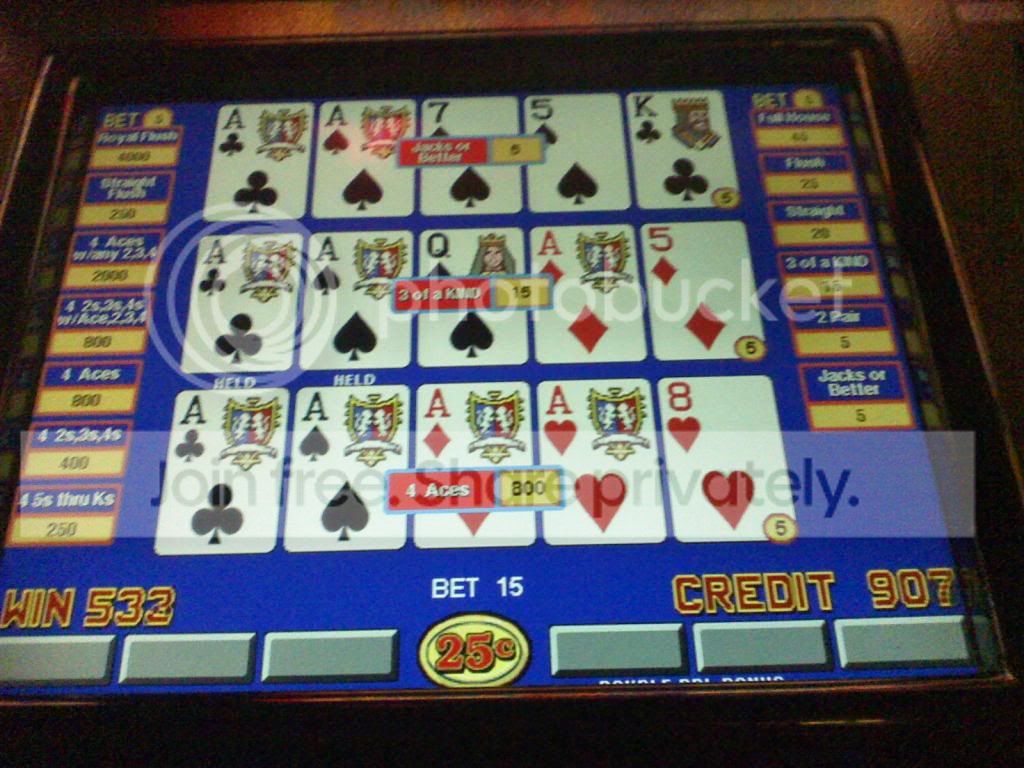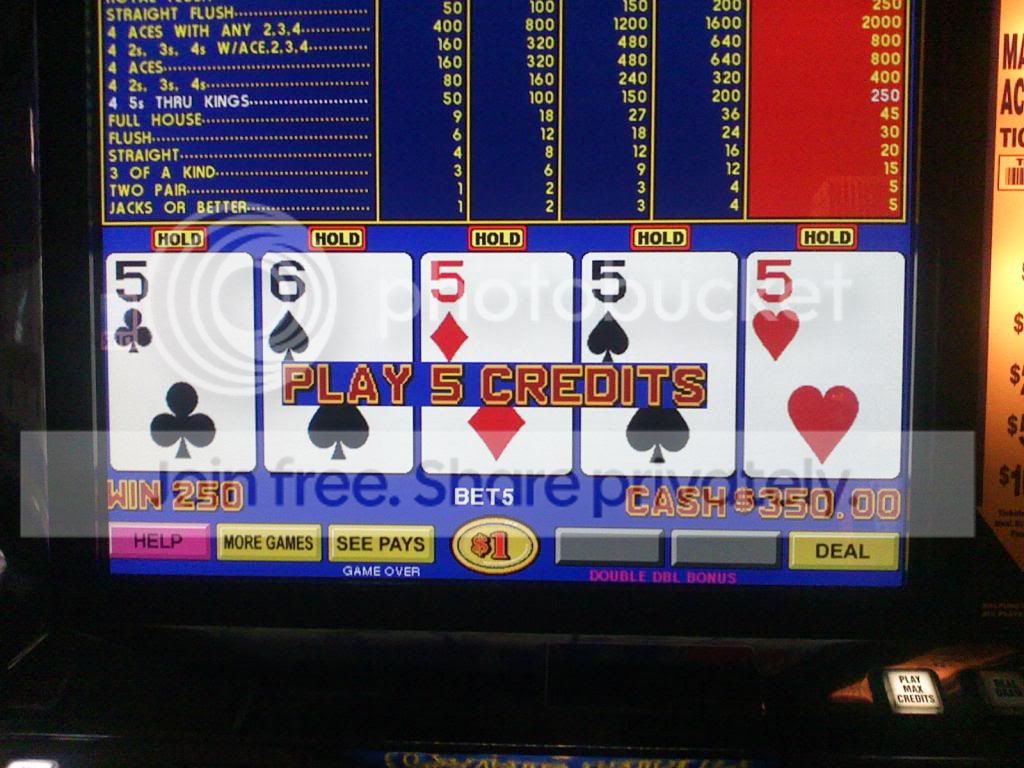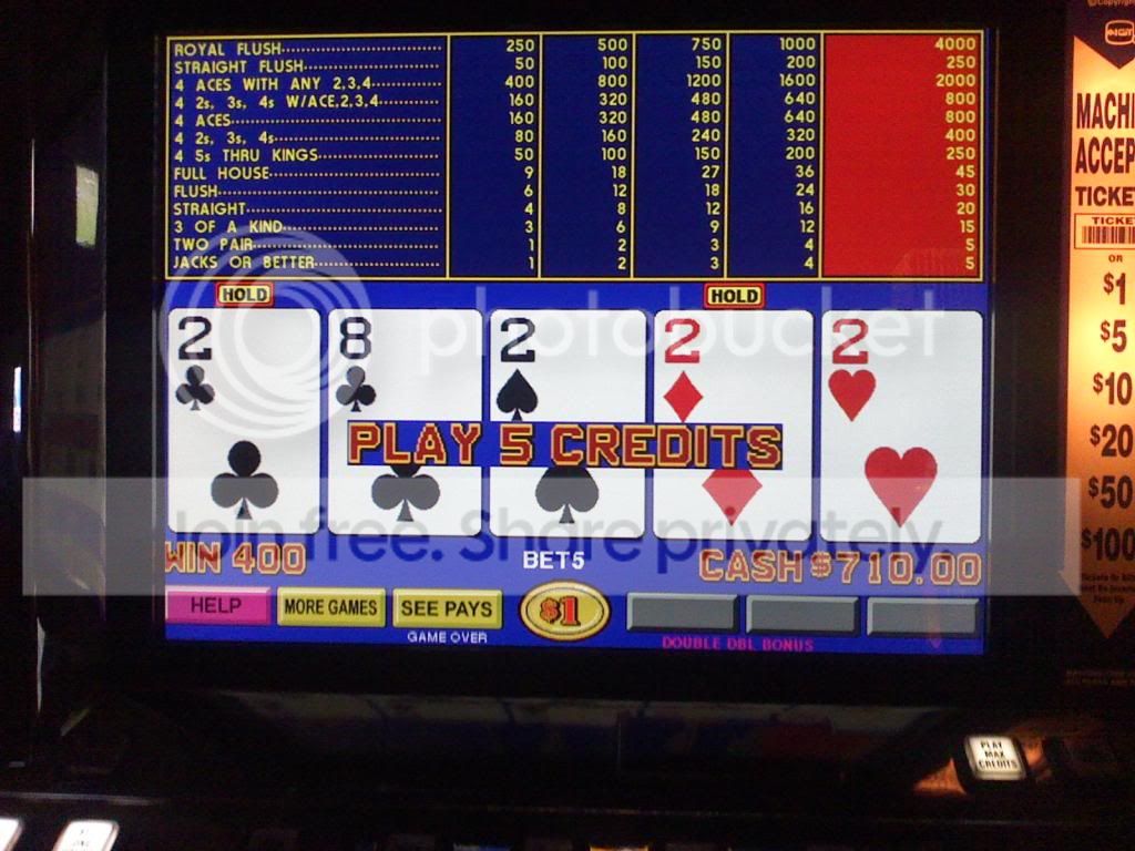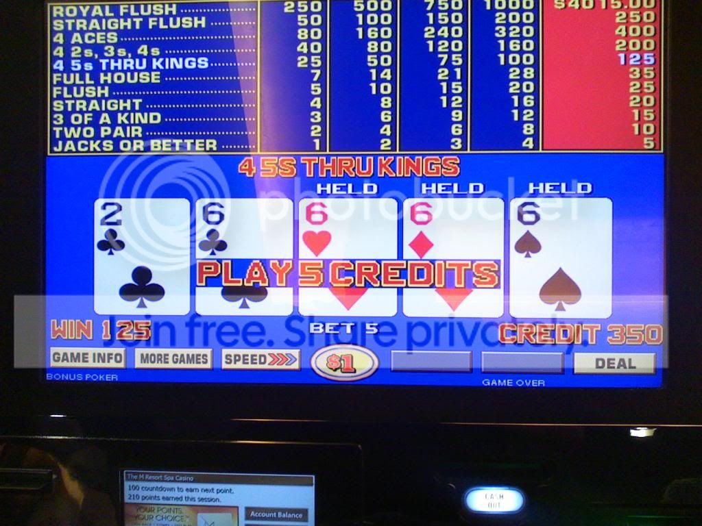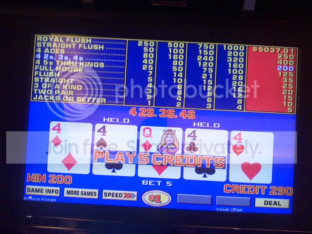 Quad fours on a $1 Bonus Poker machine