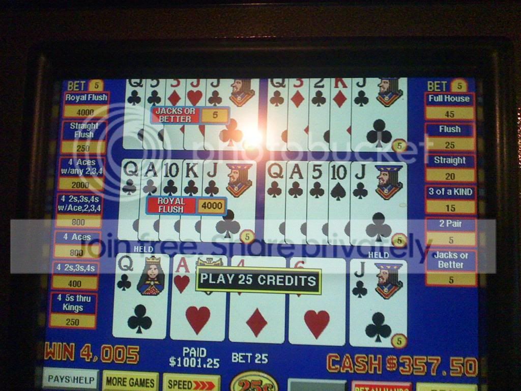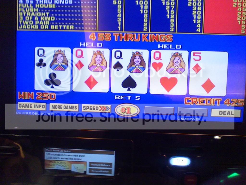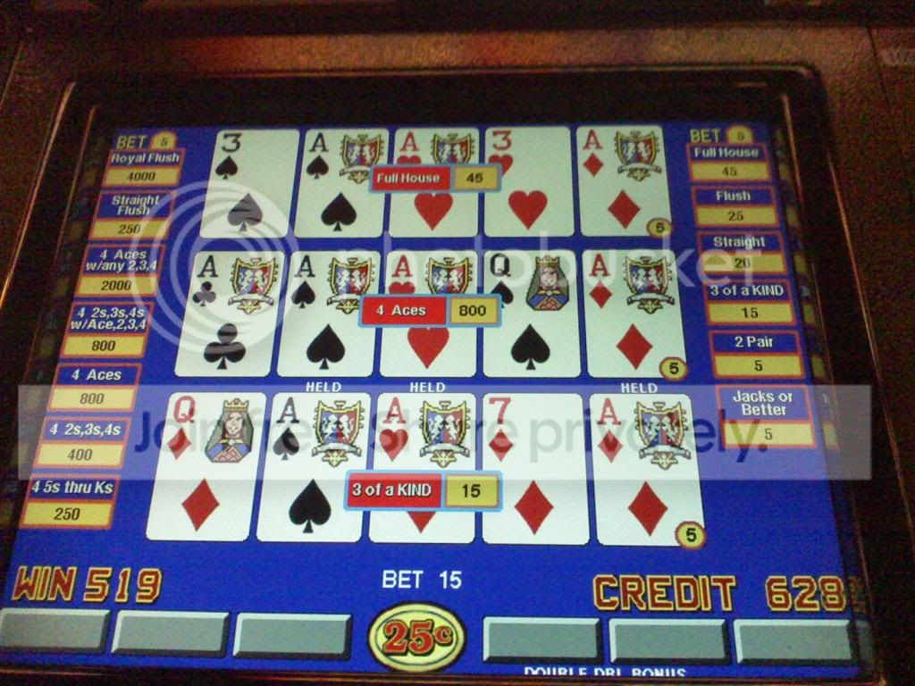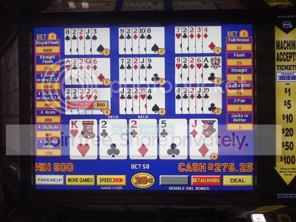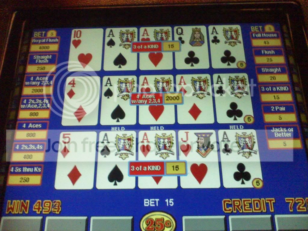 Quad fours on a $1 Bonus Poker machine
