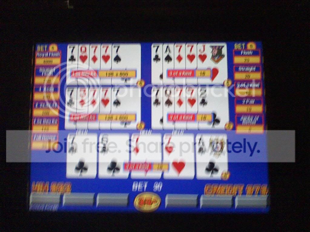 I was dealt three sevens , and picked up two quads for 2 wheel spins of 600, and 400 credits.