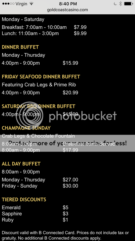 Which ones do you like? I'll be at Gold Coast at the end of the month and I might try their $17.99 champagne brunch. According to their website it looks like the champagne flows into the dinner as well, not sure though. This is from their website.