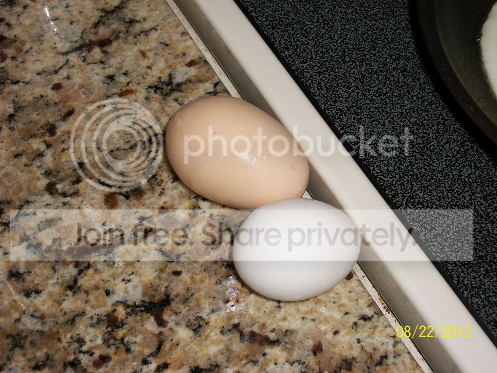 My in-laws neighbors have a chicken farm and along with poultry they also do eggs, well they aren't allowed to sell the oversized double yolk eggs (big brother watching out for our best interests) so they always have an overabundance of these eggs and of course give them away to people they know. The in-laws were down this weekend and brought yet another few trays of eggs, geez, haven't even finished the last batch. Interesting in that, for whatever reason, these straight from the farm eggs last forever ,they never seem to spoil. Anyhoo, thought I'd share at just how big these eggs are. The white egg is your ordinary extra large store bought ariety.