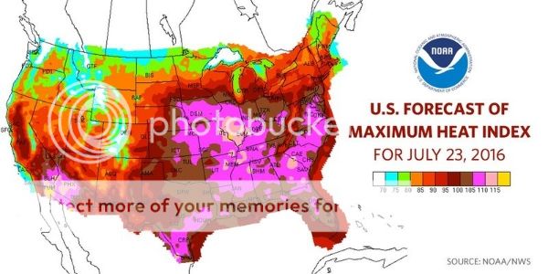 The National Oceanic and Atmospheric Administration has issued a Maximum Heat Index Forecast for 23 July 2016.