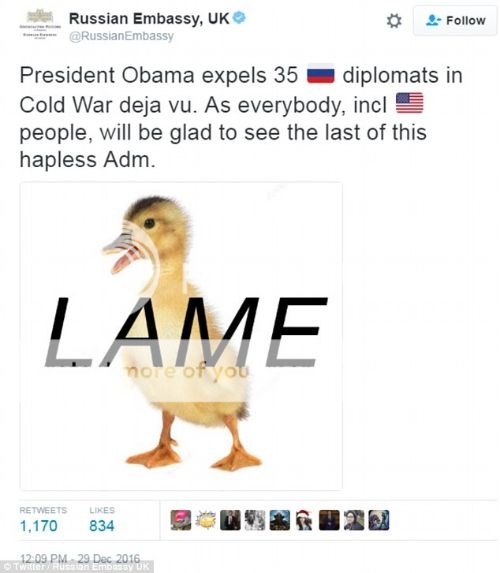 Tweet from the Russian Embassy, UK: