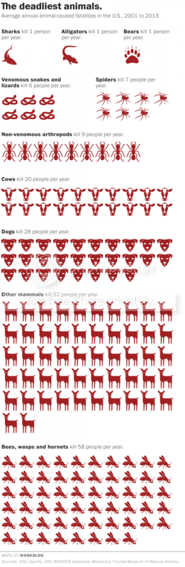 So, here are the statistics on the average animal-caused fatalities in the U.S. each year between 2001 and 2013.