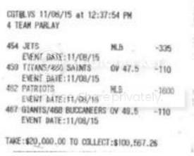 The interested reader, if any, can see a video of the subject play which resulted in a $20,000 ticket paying $100,567.28 at ESPN