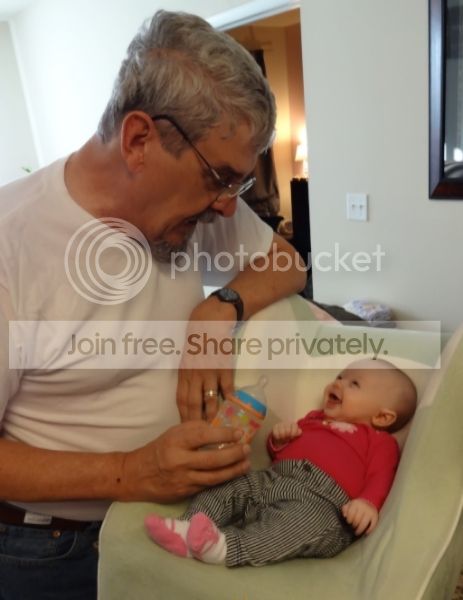 His new granddaughter was happy to see Grandpaw DonDiego, . . . or maybe it was the milk, . . .