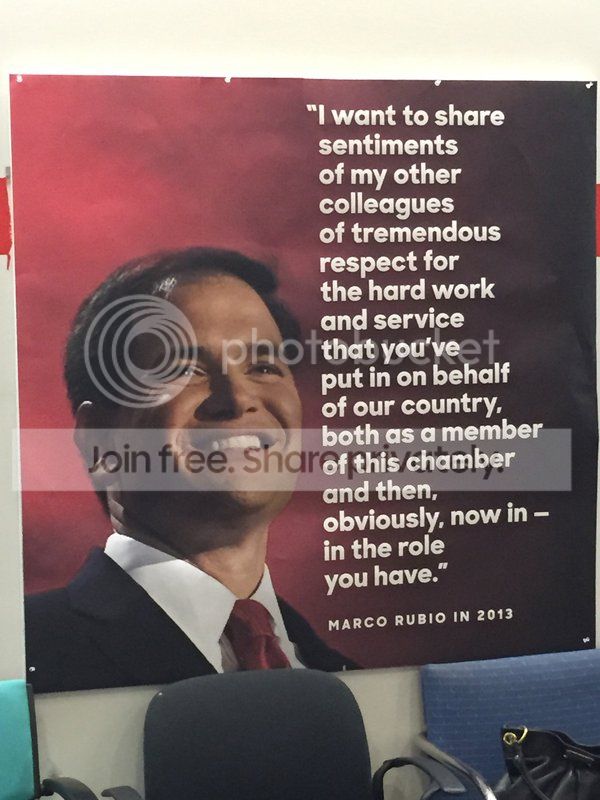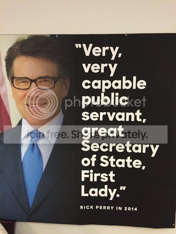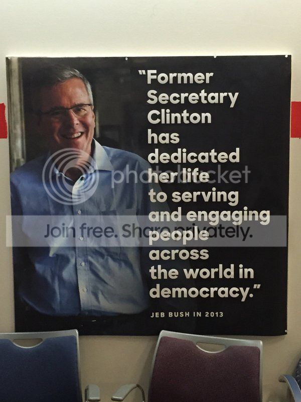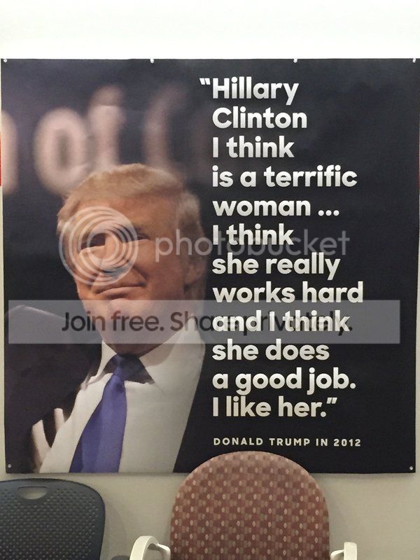 Where in the hell is this place where they have huge posters of Republicans praising Hillary on the walls...and such ugly chairs? Forkie's basement? Do you have 'Come to Hillary' meetings there or something?