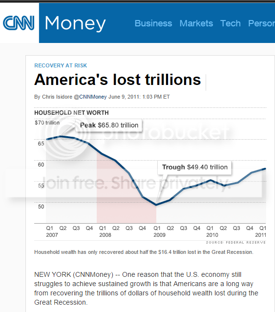 Of course a lot of that household wealth lost was artificially inflated home valuations. That's what happens when you have a housing bubble. It's even worse when millions treat their artificially inflated home equity as an ATM machine.