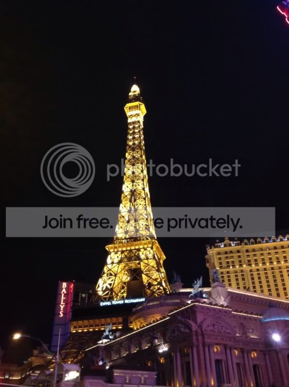 We hung out until our dinner reservation was getting close. So we headed to Eiffel Tower Resteraunt for dinner. The dinner was amazing as usual, the view at night was awesome!!! It started raining and it was very windy, so the tower ride was closed