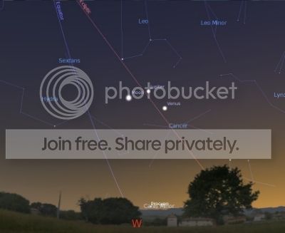 But wait ! It gets better. On the evening of June30-July1 Venus and Jupiter snuggle up to less than half-a-degree apart, less than the disc of the moon as viewed from earth:
