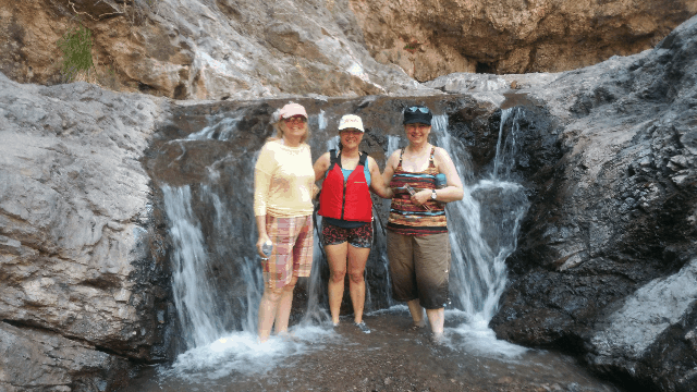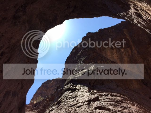 We decided to skip the Sauna Cave. It's 130 degrees, 100% humidity, and pitch black inside. I'm glad I did it before - once. After a mile and a half, we stopped at Gold Strike Canyon.