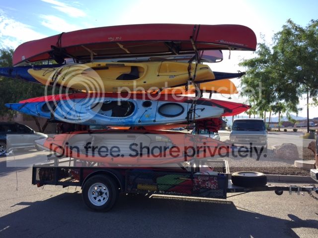 That chubby looking orange thing at the bottom is mine. It’s my blow-up boat; an Advanced Elements that converts from single to tandem. It’s pretty much state of the art for an inflatable, with