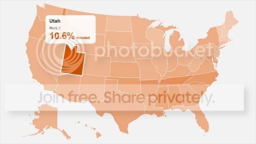 n.b.This is the map from the cited article, but modified (by someone unknown) to emphasize the State of Utah; it was just too hard for poor old DonDiego to get the map on the money.cnn website into his photobucket. Also the color-scale is missing; the lightest color represents 2.5%, the darkest 10.6% - DD)