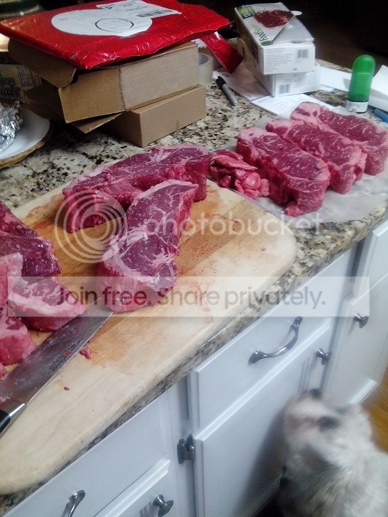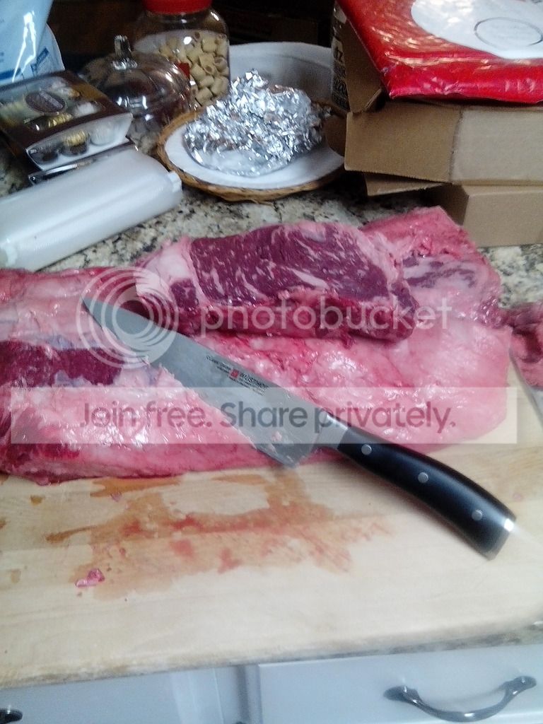 Also, after cutting I ended up with ten cuts of USDA thick cut prime strips for a little over seven bucks, I can't get that for a choice strip at my local grocery store.
