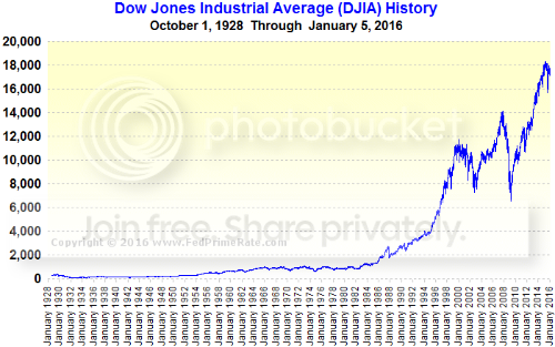 The DJIA history suggests the possibility of significant rises and significant drops are possible.