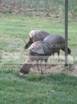 Then this mornin', some lady turkeys were a'feedin' 'neath the backyard feeders, . . .