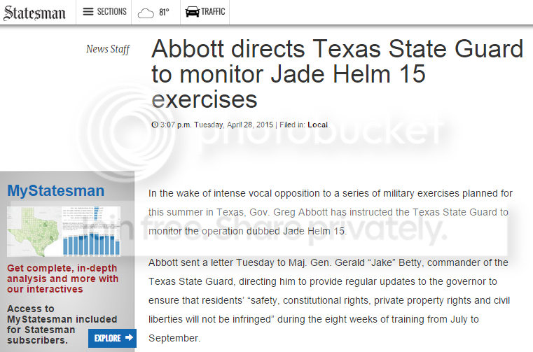 __Governor Abbott states: “It is important that Texans know their safety, constitutional rights, private property rights and civil liberties will not be infringed,” and he has directed the Texas State Guard to monitor the DOD exercise.