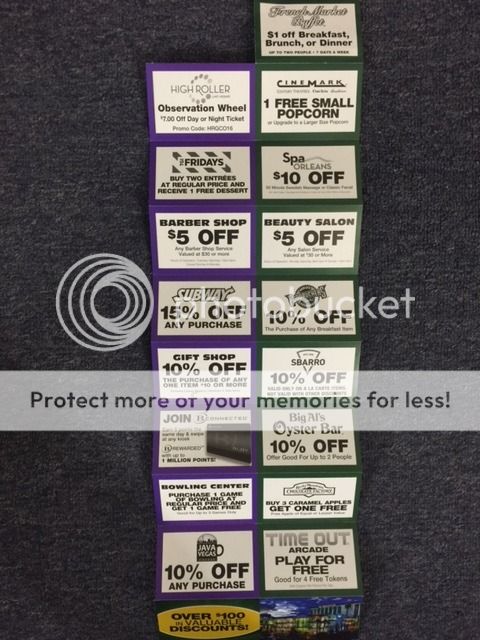 Received this Orleans fun page the other night upon check-in. Not sure what the top left (ripped out) coupon was but the $1 off buffet (top right) is a new one. Upon check-out I asked for another one and was given another one again with the top left coupon ripped out. It must have been too good.