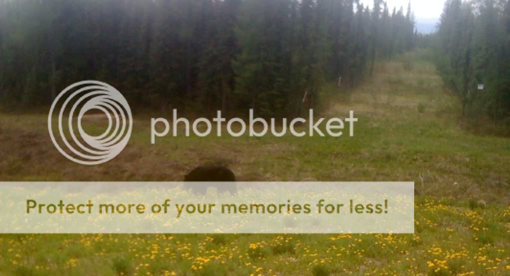 The quality of the pics coming off my iPhone aren't the best but you get the drift. There's a black bear laying in the flowers. We look at each other and he continues to just play. Eventually, he gets bored and meanders away.