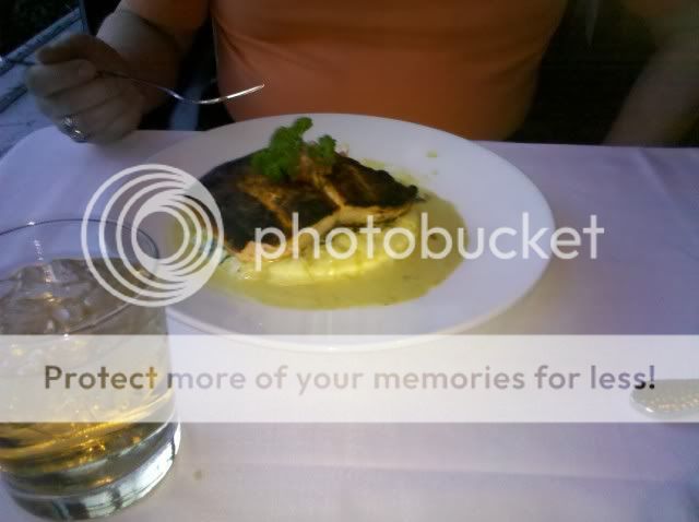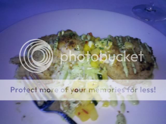 Chick had blackened Salmon and I had crab cakes. I was nit impressed with the crab cakes but the salmon was really good. Oh and the lobster bisque was very good!