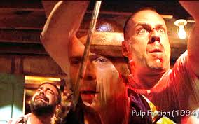 I was clicking through the channels the other night and came upon Pulp Fiction. Not speaking a word of Spanish I find it amusing to watch a scene that I know by heart like Arnie in Predator or Terminator or something like that, it just seems something is lost or amiss. Yes I'm easily amused Well the part I came across in Pulp was the rape scene with Butch and Marcellus.