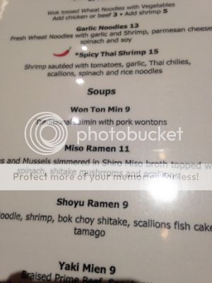 Food: On these trips eating is pretty much just a functional thing, we're not seeking out the best meals in the world. We had the lunch buffet at MSS once, and again I think it can best be described as functional. The salad bar was nice, everything else was just meh. I think we ate at 777 three times, mostly just snacky stuff. I like their buffalo wings a lot, and we did order the "off the menu" onion rings which were solid. We also ate at the noodle place at the Cal, which was also very good. They do have a typo on their menu however......