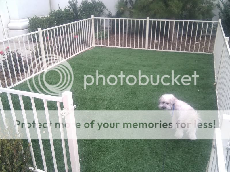The gated area is all Artificial Grass. Cosmo was good about walking into it and piddling just past the entry way, and then walking rite out. He did not have much interest in going to far in there at first. On the morning before we departed, he seemed a little more comfortable going further in and poopies, although, I was not to excited about walking in there to pick it up!