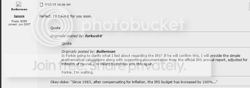 Boiler is still waiting for evidence from Forkie that Boiler lied. I won't hold my breath.