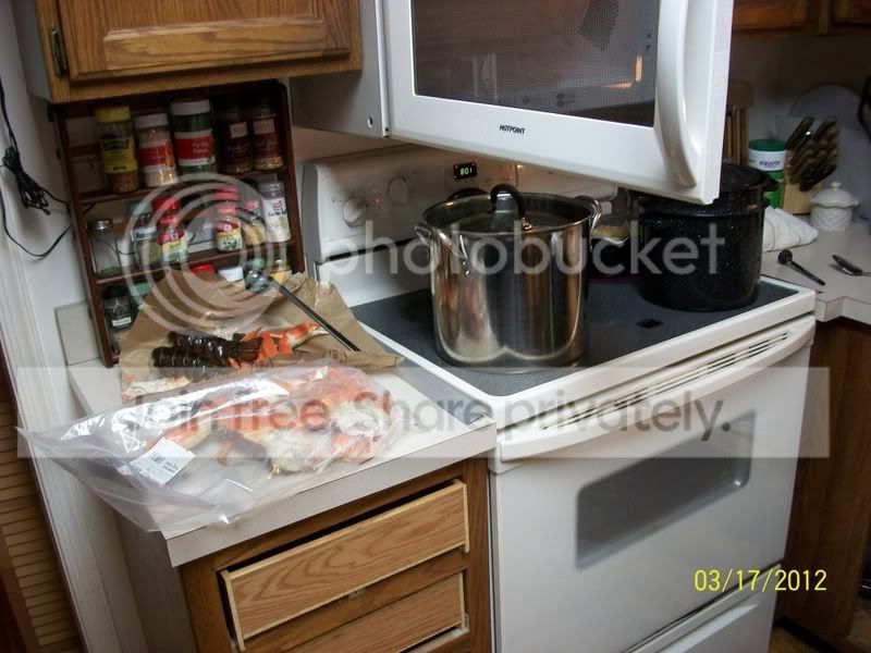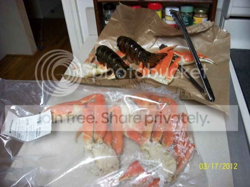 Last night was seafood night, My son wanted snow crab for his birthday, i told him no,i'll get ya kings, he replied in the negative so i got him 3 lbs. of snows and damned if he didn't eat 'em all. Its truly amazing how much he eats, its a wonder hes not fat. I guess his high metabolism and the fact he stays active all the time helps. Thankful hes not one to sit on his rump and play vid games all day. Thought i'd get a coupla robster tails for me and M as they were on sale and looked really healthy. Got a little she-crab soup too. YUM-MY.