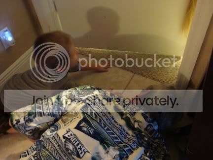 Here is DonDiego and grandson getting CAUGHT trying to spy on auntie wrapping her presents.