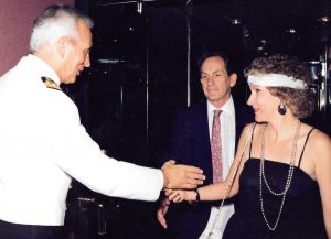 Back when you really dressed up to attend the Captain’s Cocktail Party on a cruise: