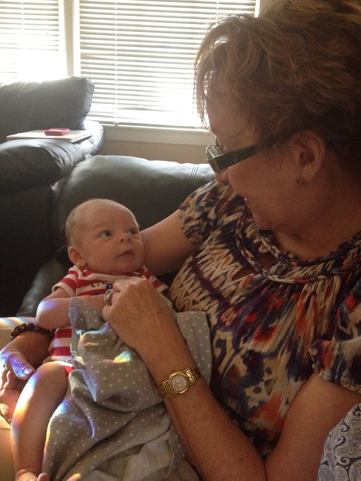 What a sweet look, checking out Great-grandma and Great Poppy.