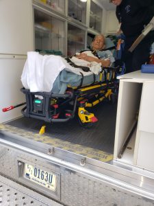Here is a picture of Brad being transferred from the military hospital at Fort Benning to a civilian one in Columbus, the latter one having a better cardiac department.