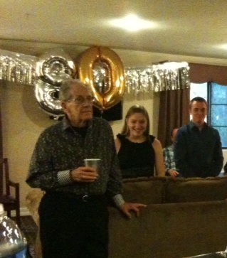Actually we celebrated his birthday most of the month. The Frugal Princess family helped him celebrate while they were in town over the holidays. Here is a picture of Brad, with the two grandkids, at that party.