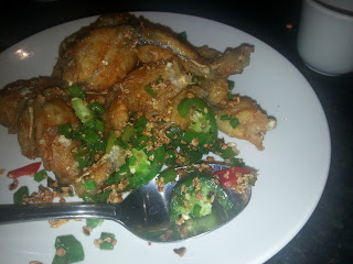 If this is what the floor looks like when they open you can imagine what it is like at midnight. But hey, I’m not eating off the floor. Bring it on. Many of the comments I have read said you have to try the regional dishes, this is where they excel. Okay, I tried the salt and pepper frog legs.