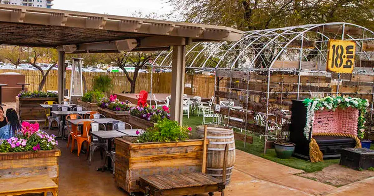 Bin 702 Happy Hour in Container Park open daily 3-6 PM, offers $7 Wine by the Glass, $6 Well Drinks, $5 Local Pints and charcuterie and cheese boards starting at $10.